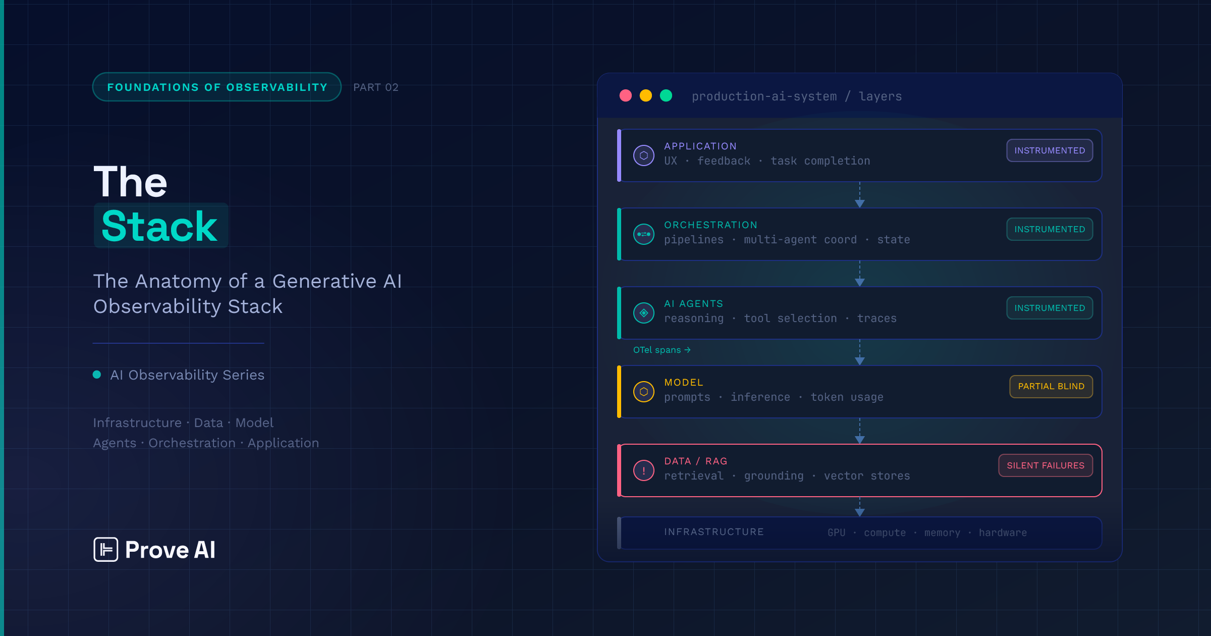 This is why you can think of the stack as “a diagnostic map” as much as it is an architectural concept. When a failure surfaces at the application layer, an AI observability platform like Prove AI tells you where to look first — which layers are most likely to contain the root cause, which metrics to pull, which dependencies to interrogate. Without that map, investigation tends to be ad hoc, more akin to fumbling around in a lightless cave than a proper search. With it, however, investigation becomes something you can prioritize systematically: start at the layer where the signal first appears, trace the cascade, and scope the problem before committing to a deep dive.